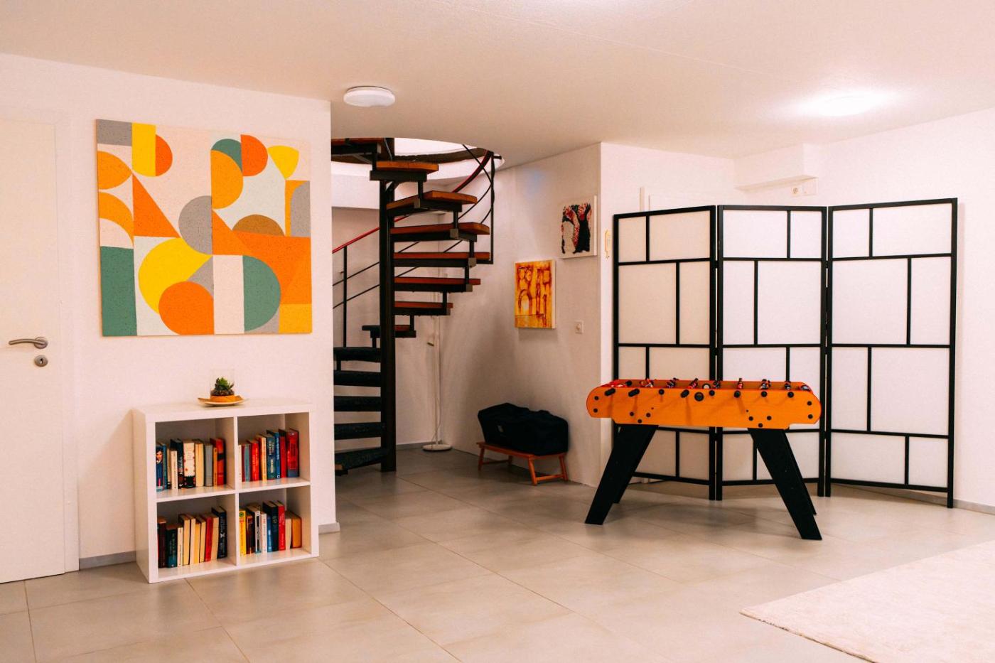 Apartment. The spacious apartment provides a tea and coffee maker, a wardrobe, as well as a private bathroom featuring a hairdryer. The well-equipped kitchen features a stovetop, a refrigerator, a dishwasher and kitchenware. This apartment offers video games and a TV.