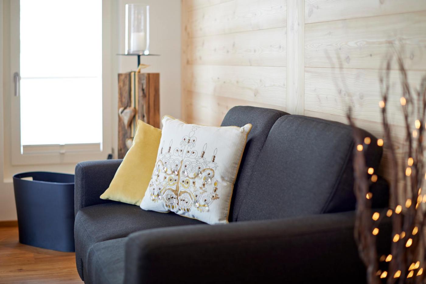 All apartments are furnished in modern Alpine-style and feature a a large living room with a fully equipped kitchenette, a fireplace and a flat-screen TV. There is also flat-screen TV and a private bathroom in each bedroom. A washing machine, a tumbler and a dishwasher are available.